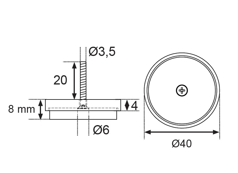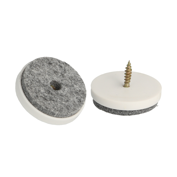Plastic Tack W/Felt, Screw-On Glide, ø 40x8mm, White, Screw ø3,5 x 20mm Zinc Plated