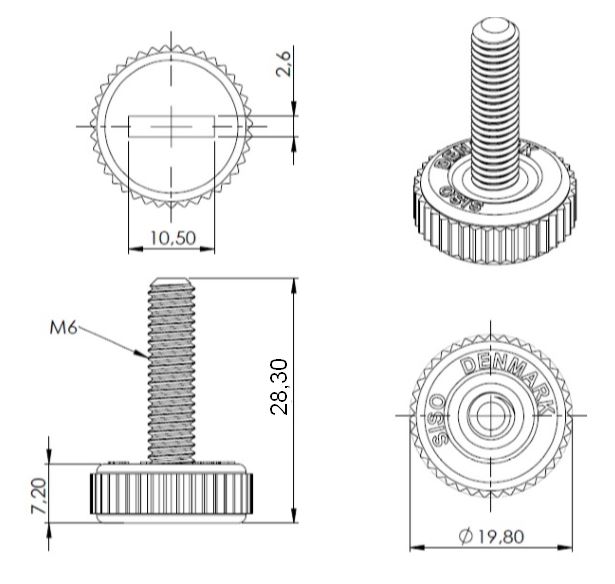 Adjust. Glide Beta, ø20mm, Black PA, Stud M6x22mm, W/Slot in