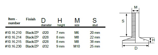 Adjust. Glide Mau, ø32mm, Black Base,ZPL Shell,Stud M10x25mm