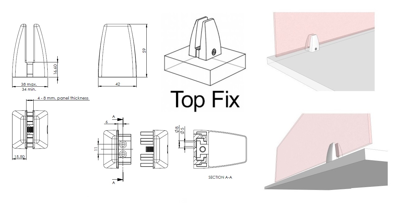 Partition Panel Clamp, Top-Fix, Alu, Black Painted, F/4-8mm Panel Thickness