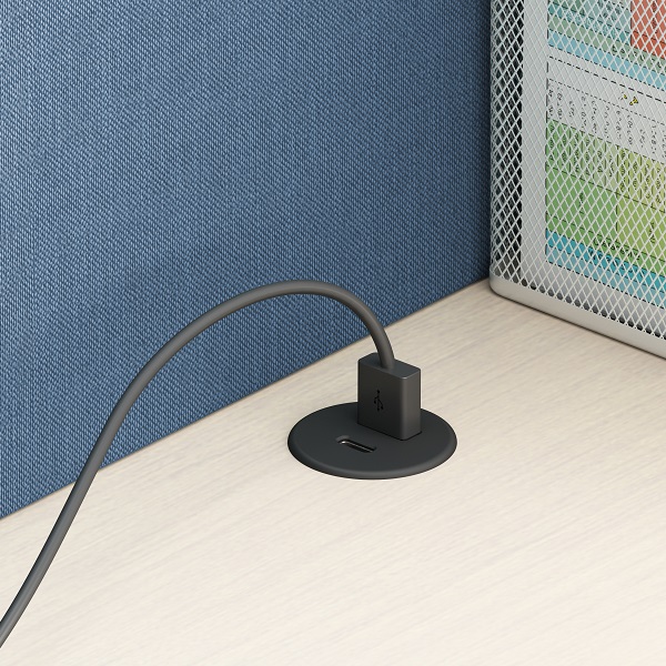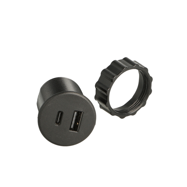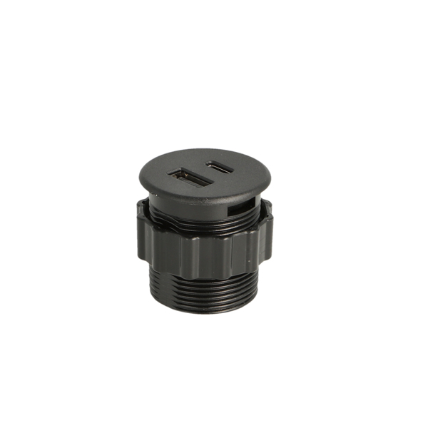 USB Charger (C+A), Round ø35mm, Black ABS, W/Euro Plug & 1,5 Meter Cable