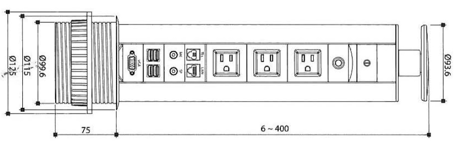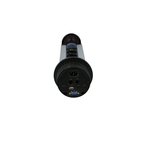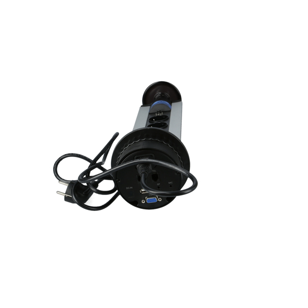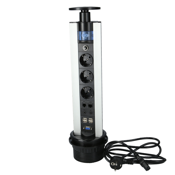 Vertical Power Station ø100x460mm, Black/Alu, Consists Of 1 x Switch, 1 x TEL/LAN, 1 x Thermal Circuit Breaker, 3 x Sockets DIN 49440, 1 x USB Hub, 1 x MIC/SP, 1 x VGA, 1 x Instruction Sheet
