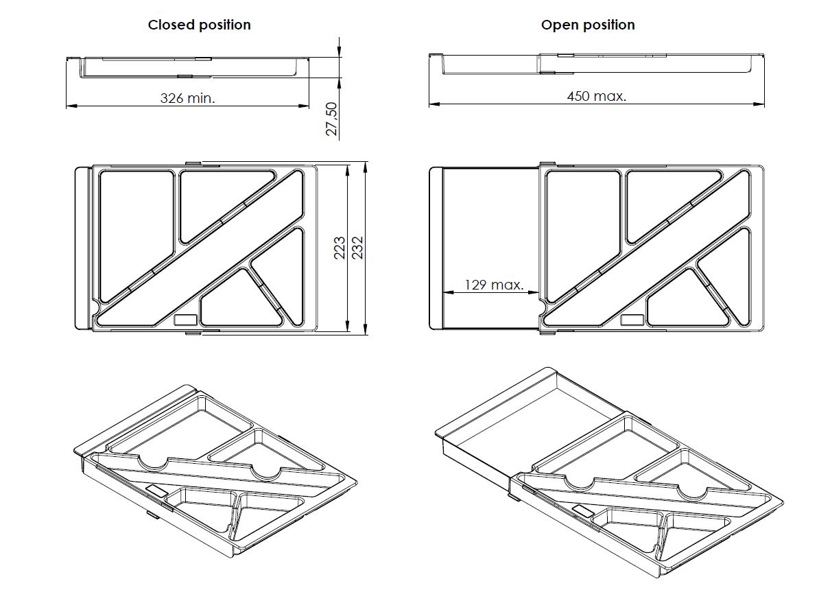 Pencil Tray, Adjustable, Black, F/325-450mm Width, Inlay Measurments: Closed:290x232x28mm, Open:415x232x28mm, Overall Size: Closed: 326x232x28mm, Open:450x232x28mm