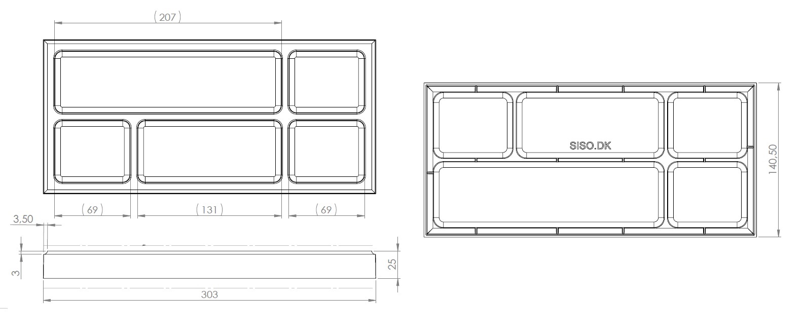 Pencil Tray, Model F-806, Black ABS, 302x140x25mm
