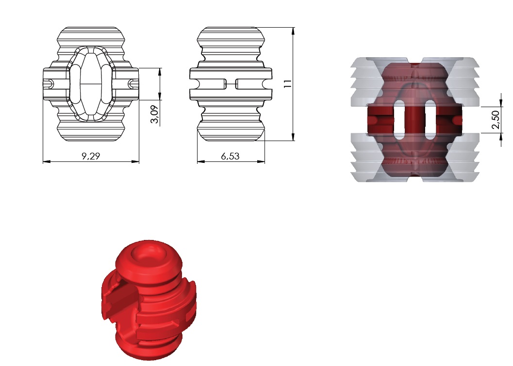 Snap Fitting "Diva" Male Part - 2,5 mm,Red PC, ø10 x 11mm