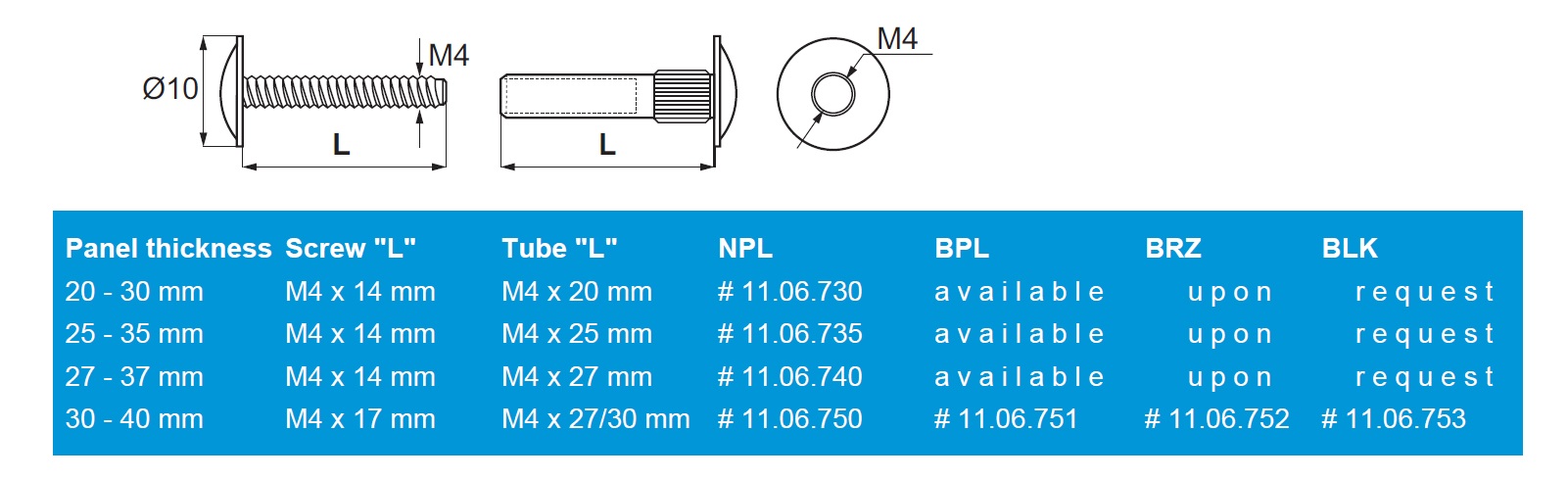 Connecting Screw, 30-40mm, Bore 5mm, M4, Steel Bronze Pl.