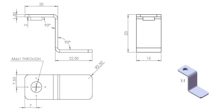 Bed Bracket "Leanderform", Steel Zinc Plated, W/M6 Hole