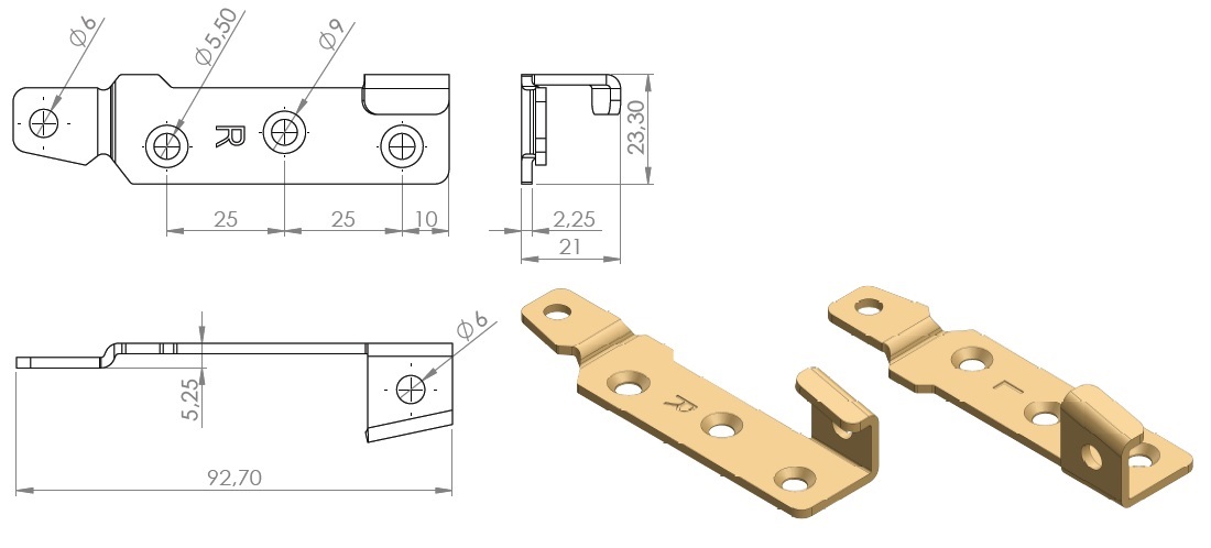 Bed Fitting No. 3553, 95mm, Steel YZP, 1 Set = 8 Pcs