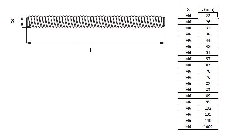 Threaded Bolt M6x102mm, Steel, Yellow Zinc Plated