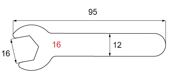 Wrench Key Open 16mm, L 95mm Flat Hardened Steel, YZP