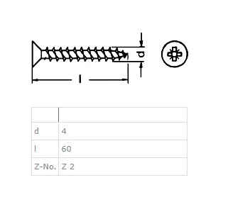 Chipboard Screw, CSK, PZD, SS A2, ø4,0x60mm, Fully Threaded