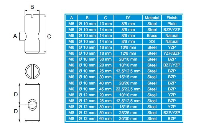 Cross Dowel ø12x25mm(12,5+12,5), M8, Steel, Bright Zinc Pl.