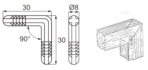 Mitre Dowel No. 2521, PE White, 90DG, ø8x30x30mm