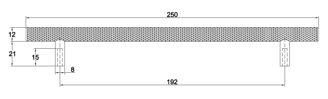 Bar Handle "House", cc 192mm, ø12x250mm,H:33mm,Black Finish, Brass Material, Incl. 2 pcs of M4x25mm. Black Screws