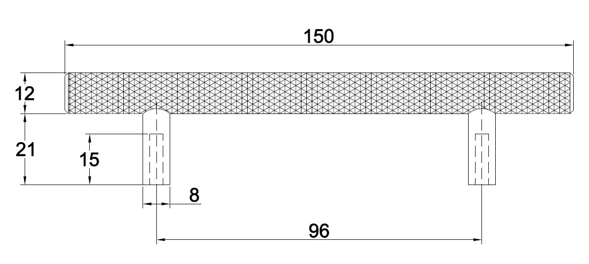 Bar Handle "House", cc 96mm, ø12x150mm,H:33mm, Black Finish, Brass Material, Incl. 2 pcs of M4x25mm. Black Screws