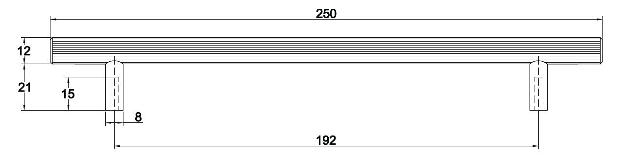 Bar Handle "Justa", cc 192mm, ø12x250mm,H:33mm, Satin Brass, Material, Incl. 2 pcs of M4x25mm. Screws