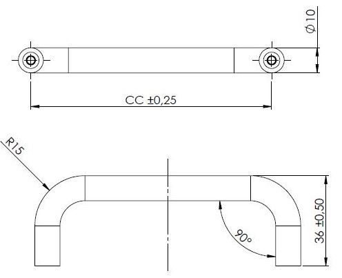 D-Handle "Galla", Steel, cc 224mm, ø10x234mm, H 36mm,SS-Look
