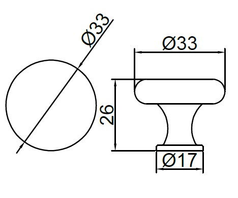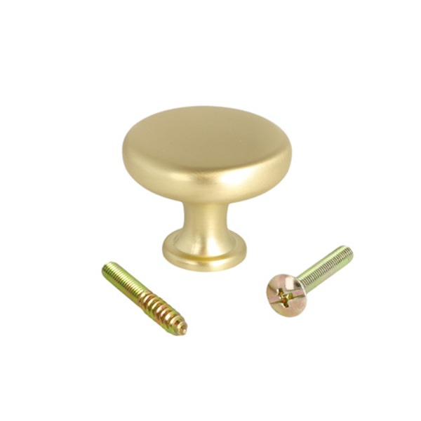 Knob "Juno" Zamak, ø33x26mm, Brushed Brass, Incl. 1 Pcs. M4x25mm Screw + M4x40mm Hangerbolt