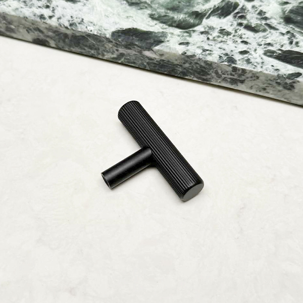 T-Handle "Justa", ø12x50mm, H:33mm, Black Finish, Brass , Incl. 1 pcs of M4x25mm. Screw
