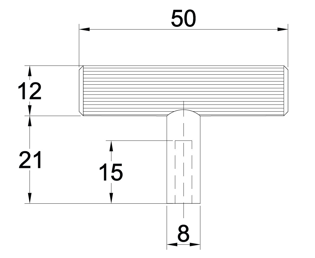 T-Handle "Justa", ø12x50mm, H:33mm, SS-Look, Brass Material , Incl. 1 pcs of M4x25mm. Screw