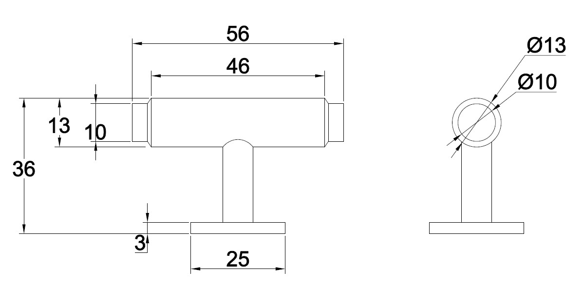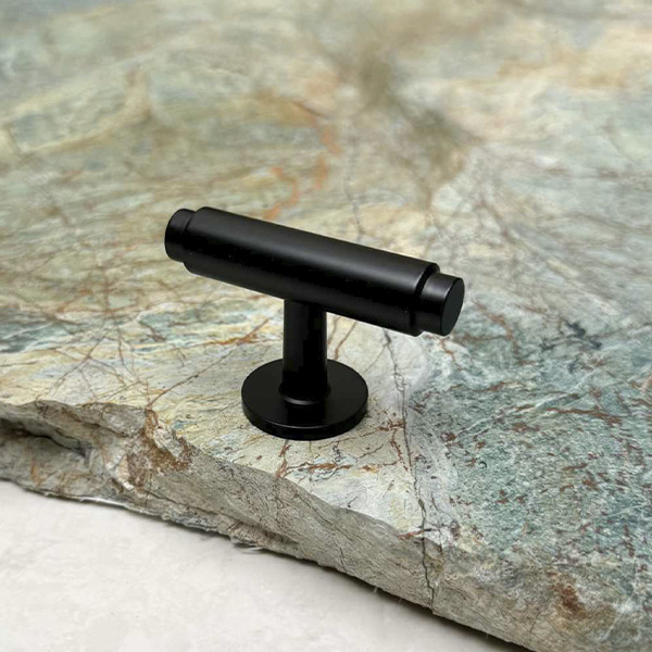 T-Handle "Nox" ø13x56mm, H:36mm, Black Finish, Brass Material, Incl. 1 Pcs of M4x25mm. Screw + 1 Pcs of M4x30mm 15/15mm. Hangerbolt