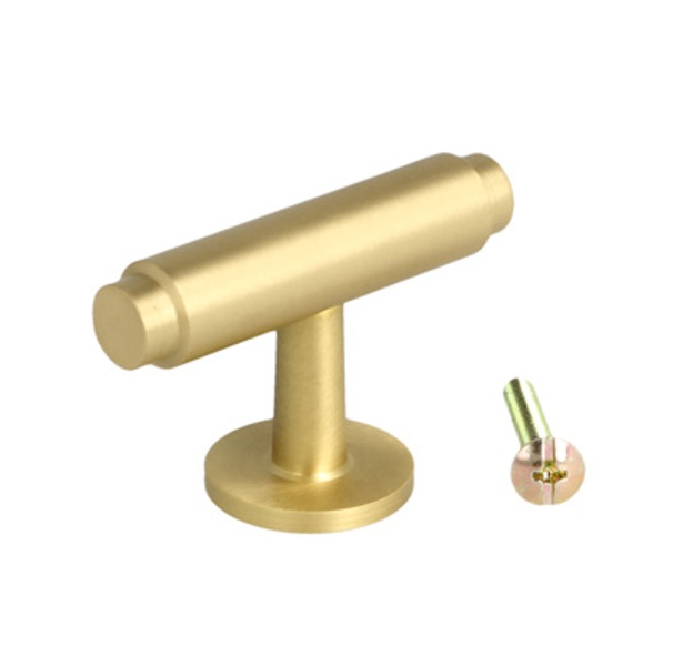 T-Handle "Nox" ø13x56mm, H:36mm, Satin Brass, Brass Material, Incl. 1 Pcs of M4x25mm. Screw + 1 Pcs of M4x30mm 15/15mm. Hangerbolt
