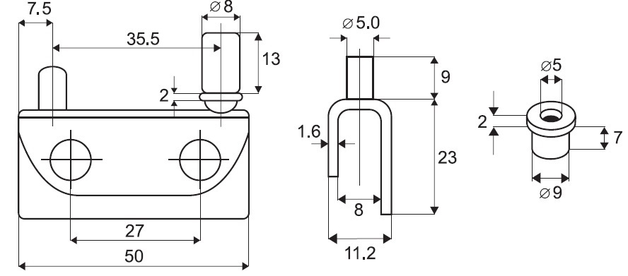 Glass Pivot Hinge 11.300, CPL, W/NPL Metal Screw W/Soft Tip, Bushing ø9X7mm Black Plast