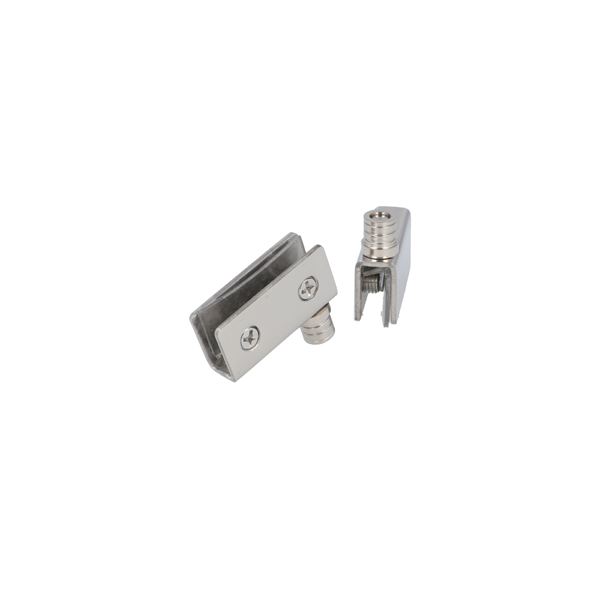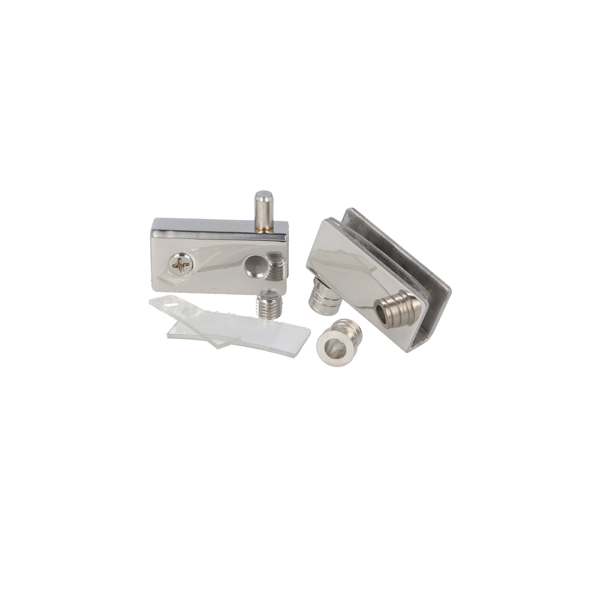 Glass Pivot Hinge "S", 42x20x2mm, 6mm Glass,SS-304 Polished, W/ø9x8mm Brass Bushing & Screws W/Soft Tip, All SS-look