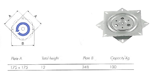 Swivel Plate 360DG, 175x175mm, Zinc Pl, Load Capacity 100KG