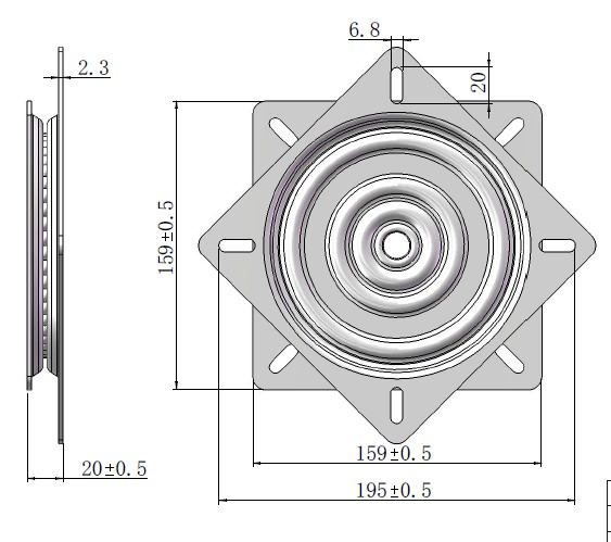 Swivel Plate 360DG-FB, 159x159mm, Black ZP, Load Cap. 220KG, Full Balls