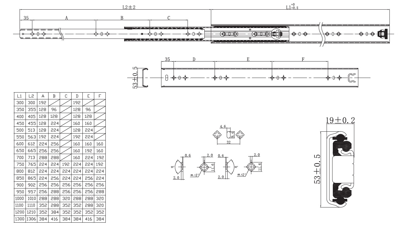 Drawer Slide HD5300, 700mm Full Extension, Zinc Plated,Heavy Duty, Load Capacity 110kg