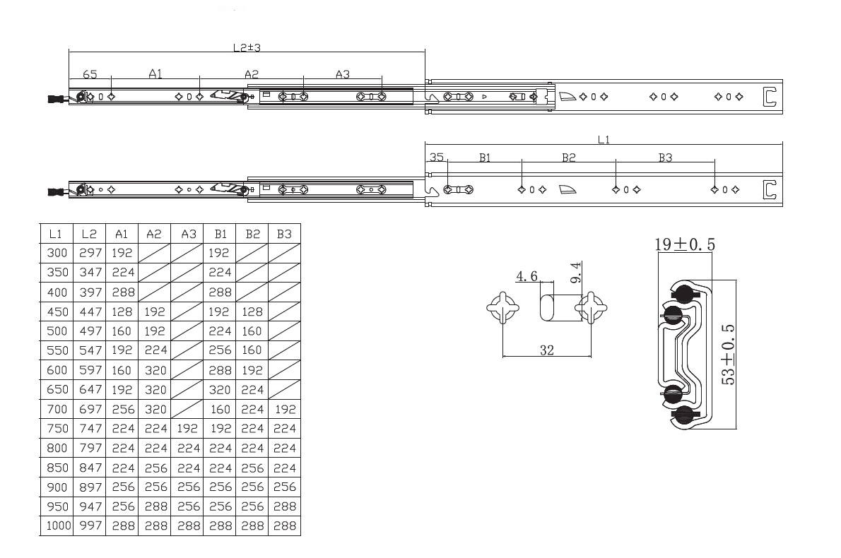 Drawer Slide HD5300L, 600mm Full Ext, With Lock, Zinc Plated Heavy Duty, Load Capacity 110kg