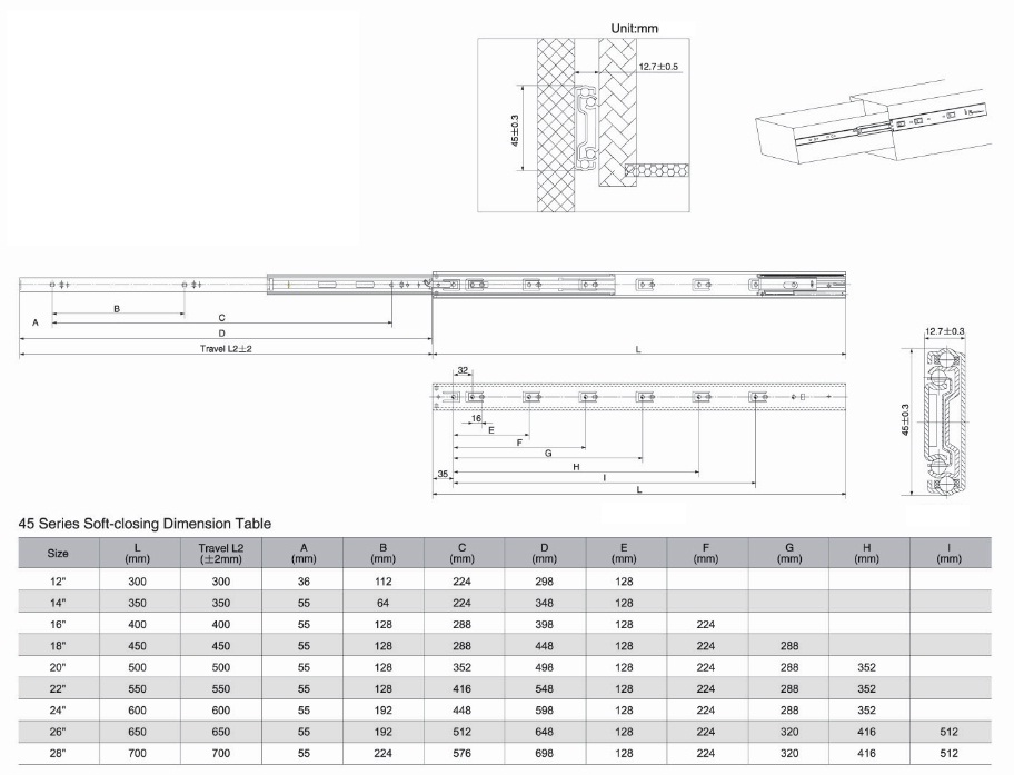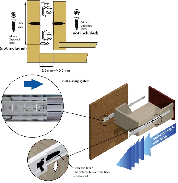 Drawer Slide 4500, Soft Close, Full Extension, Black, 350mm