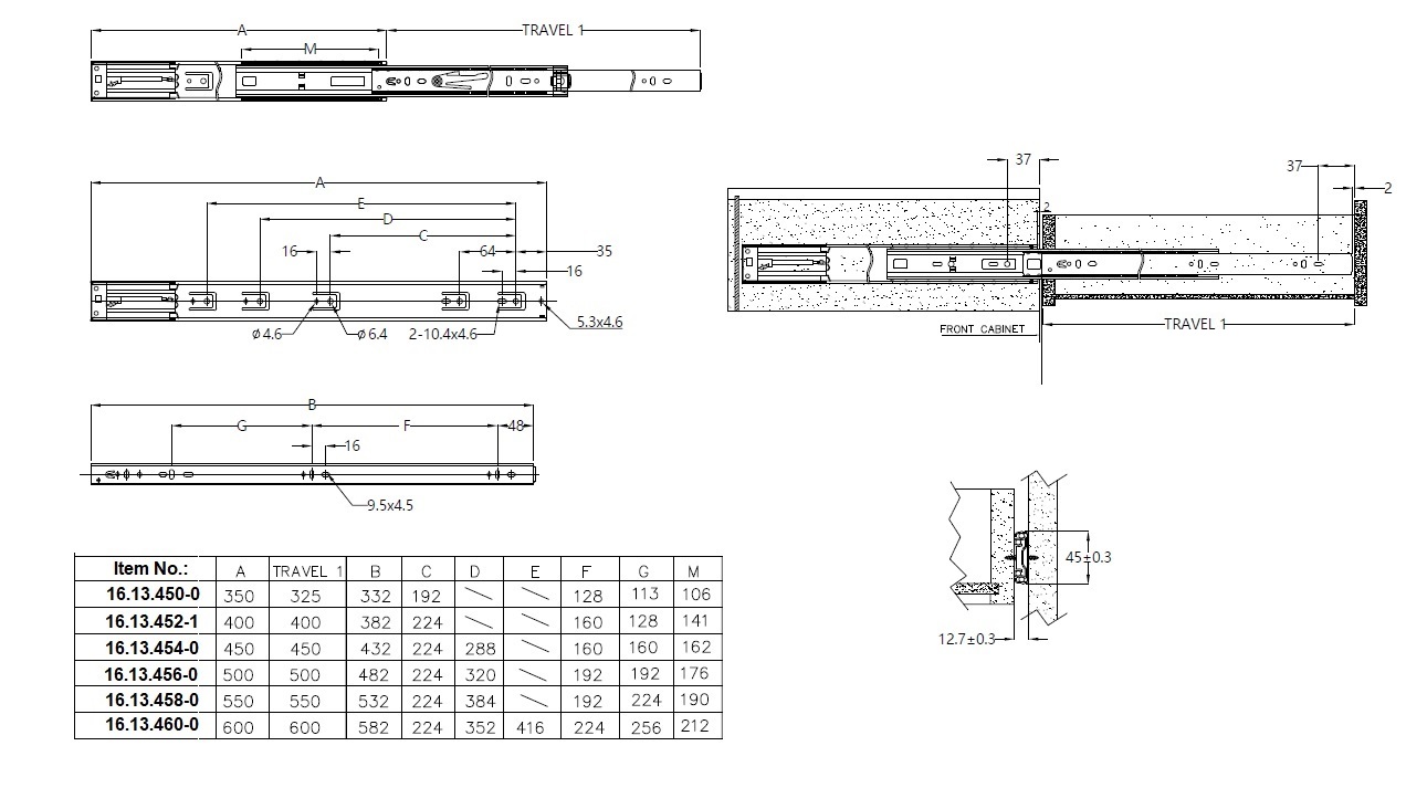 Drawer Slide 4500, Soft Close, Full Extension, BZP, 500mm