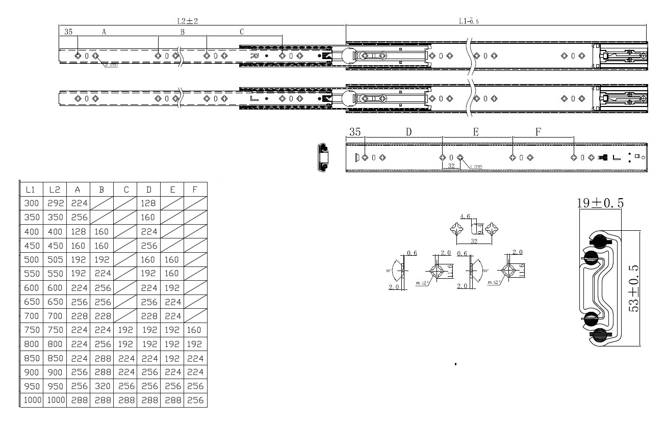 Drawer Slide HD5300S, 300mm, Full Extention, Soft Close, BZP Heavy Duty, Load Capacity 110kg