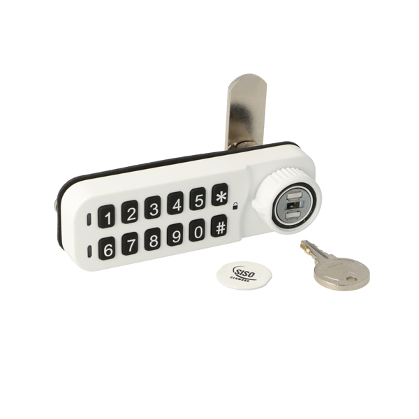 Elec. Combi. Cam Lock, "VIC", ø19x20mm,Horizontal, LH, White All Zamak, Public/Private, W/Master Key System #07, 3 Level Management, W/Auto-timer Function, IP65 Rating, Powered by CR2450 Button Battery, 30.000 Cycles, CE, REACH and Rohs Certified