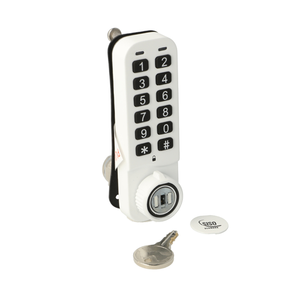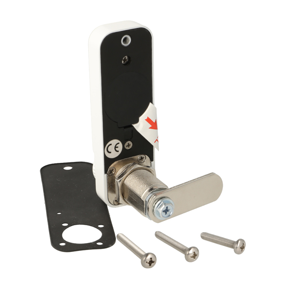 Elec. Combi. Cam Lock, "VIC", ø19x30mm, Vertical, Uni, White All Zamak, Public/Private, W/Master Key System #07, 3 Level Management, W/Auto-timer Function, IP65 Rating, Powered by CR2450 Button Battery, 30.000 Cycles, CE, REACH and Rohs Certified Universal - No right hand or left hand