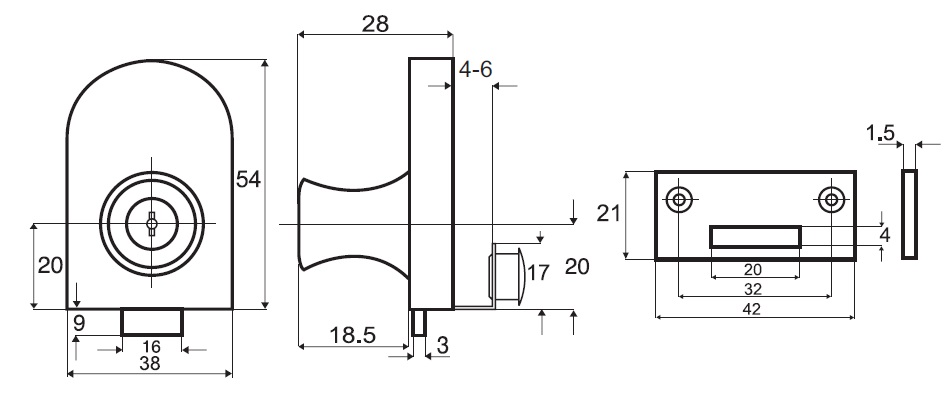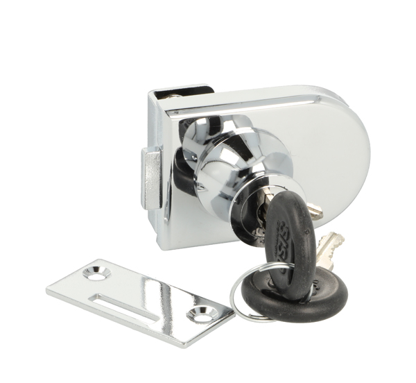 Glass Door Lock 64081, CPL, Curved Cylinder, KA D20,CK SISO, No Bore