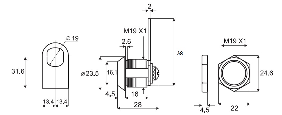 Glass Door Lock "Safe", 180DG, Cam 3, CPL, CK SISO, KA D20 CE::29,5mm, Model F/Single Swinging Door