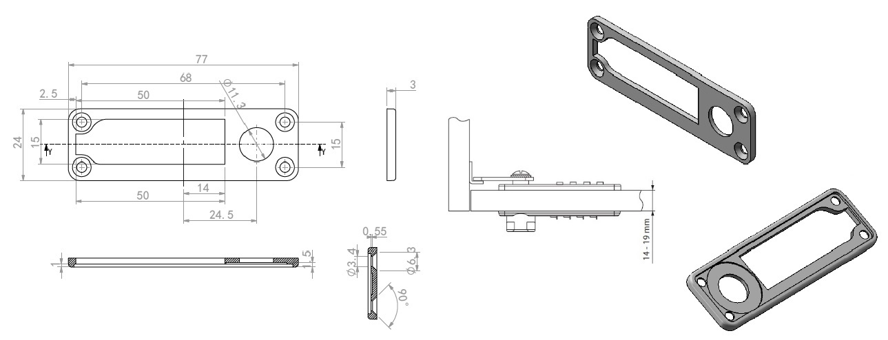 Back Plate, Black Plastic, F/Lock M906 & M901,F/Wood,W/4 Screws (ø3 x 20 mm & 4 Screws in ø3 x 16 mm), F/Wood Thickness, 14 - 19 mm, Size: 77x24x3mm
