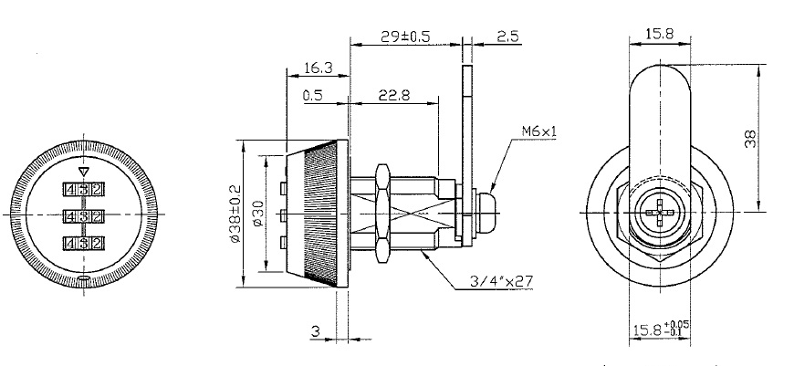 Combi. Cam Lock "Dome", 90DG, ø19x29mm CPL, Straight Cam Centre To Edge 38mm, Universal - Left & Right in one Lock