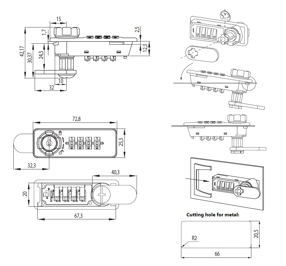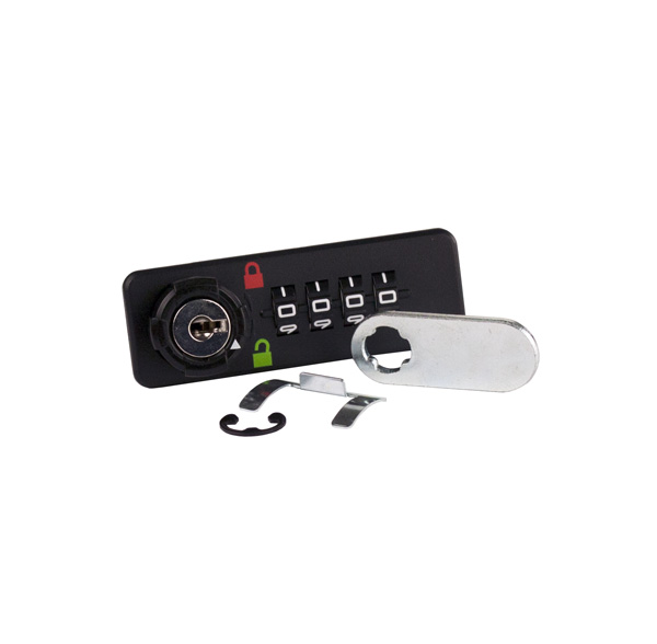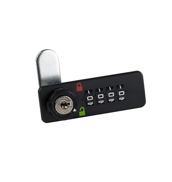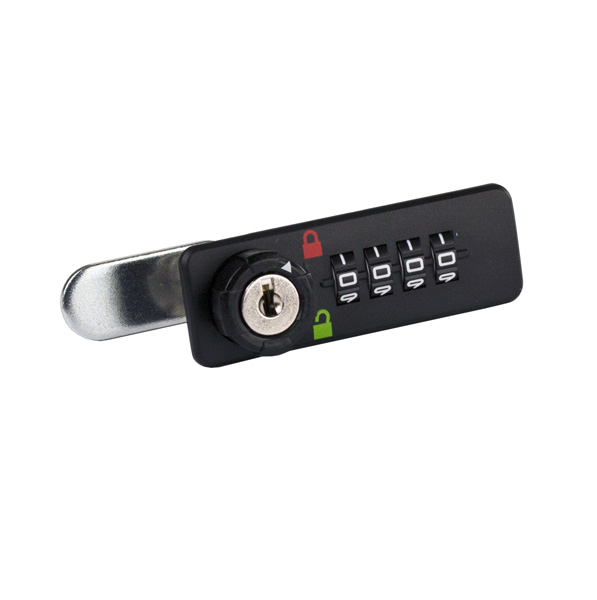 Combi. Cam Lock M224, Private, 4-Digit,RH,90DG,Black,MK+Code Finder (Direct), Black, 73X25X12mm, Straight Cam C/E:32mm, Closed 9 O´Clock, Open 12 O´Clock, Pre-coded 0000, Changing Code by Switching Button from A To B & Back, MK Code 201, Cylinder Centre to Edge of Lock Body: 12mm