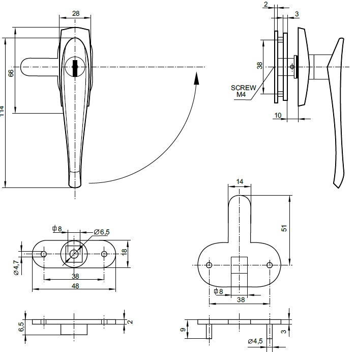 Lever Handle L-44, Chrome Plated, CK SISO, Cam No. 4, KA D20