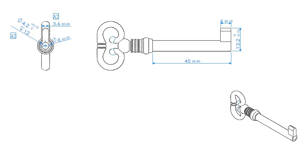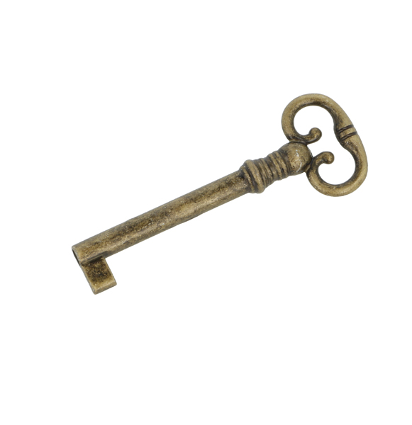 Antique Zamak Key "Lyre", BRZ, Shaft 45mm, W/Euro Bit