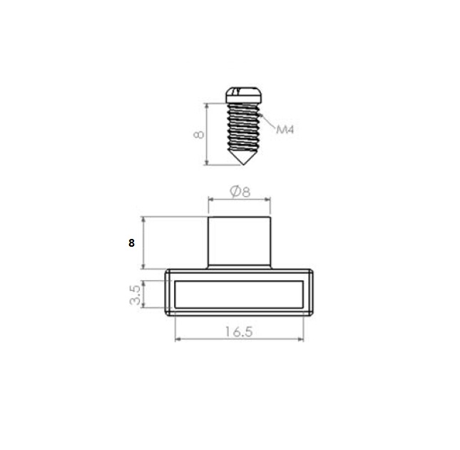 Adjustable Peg 8mm With Premounted Screw, Zinc Pl.