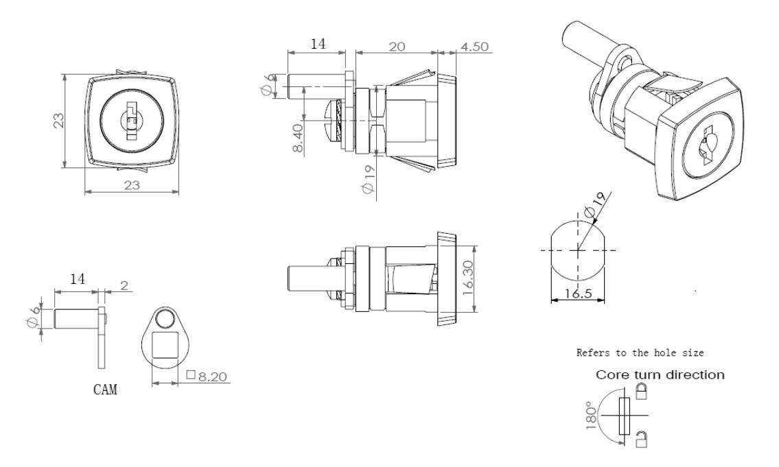 Central Lock 44D, 180DG, Square Front, CPL, MK SISO, No Ac- cessories, No Bar