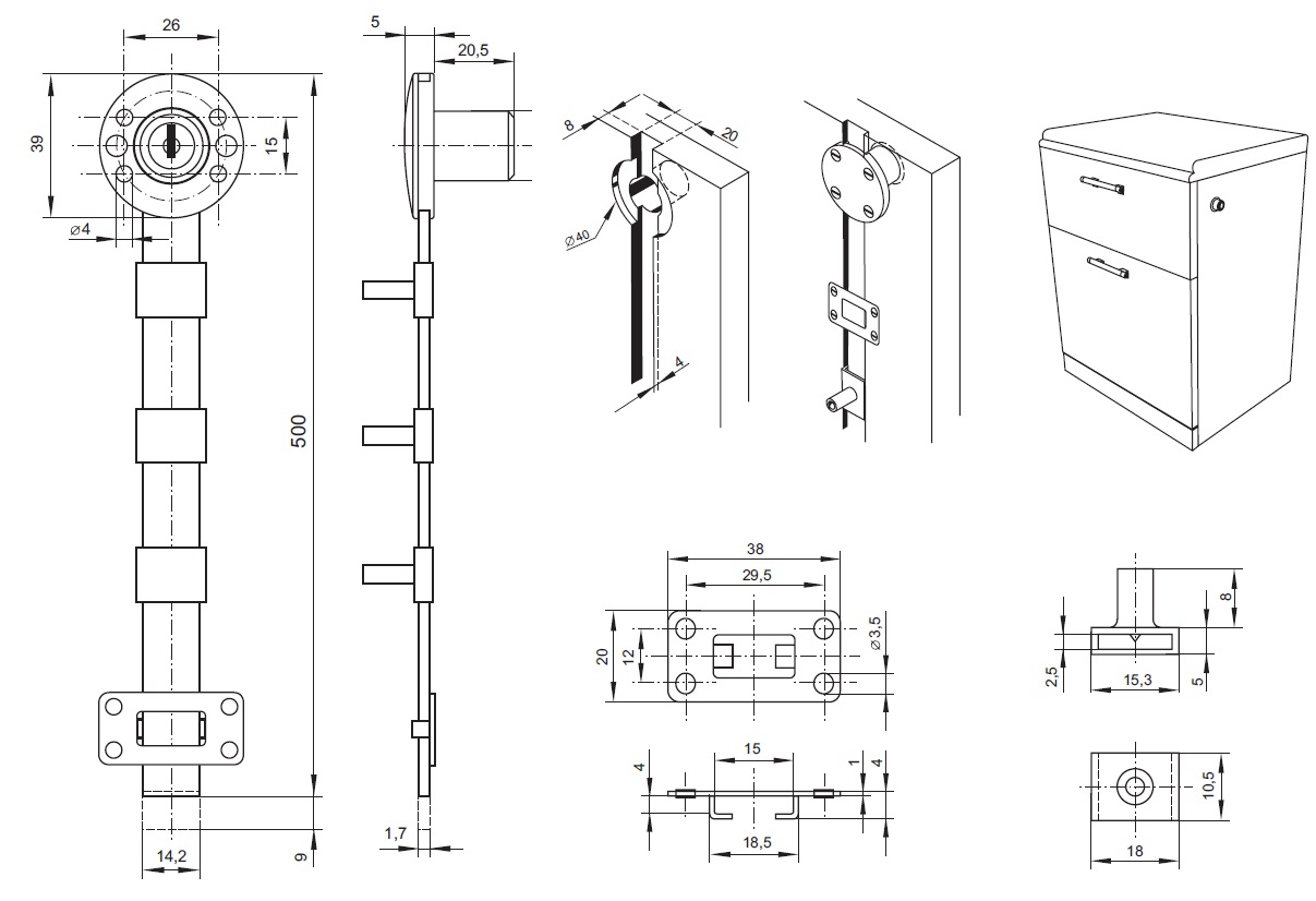 # Central Lock 851/500mm, ø19x22mm, CPL, HCK CPH, 8mm Pegs, 80 KD
