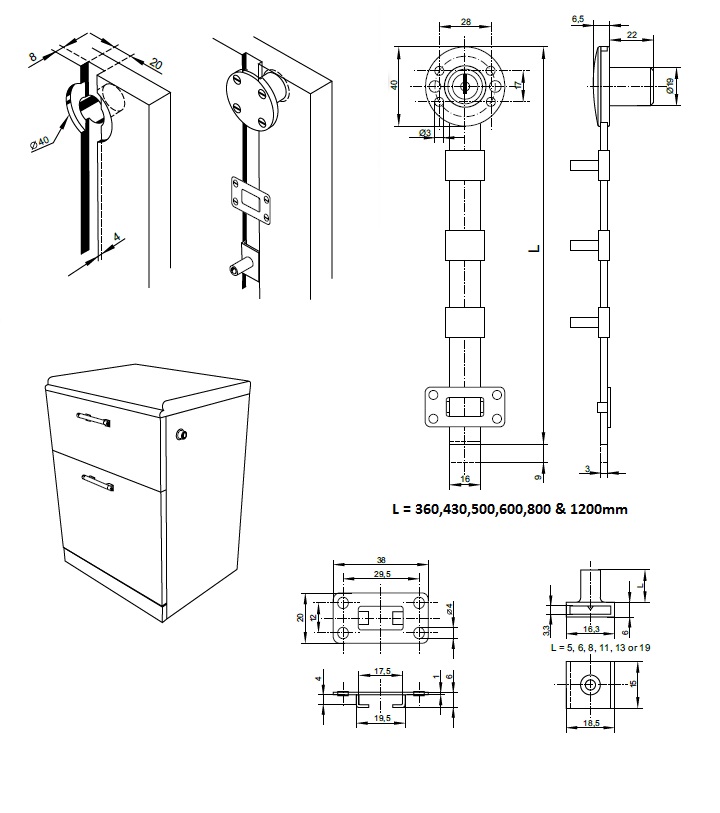 Central Lock 851N/500mm, ø19x22mm, NPL, CK SISO, 19mm Pegs W/Screws