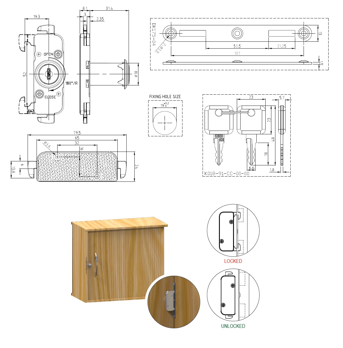 Shutter Door Lock "Verti", MIC, ø18x32mm, NPL, BLK Metal Striker, NPL Zamak Body & Cylinder, CK:Neutral