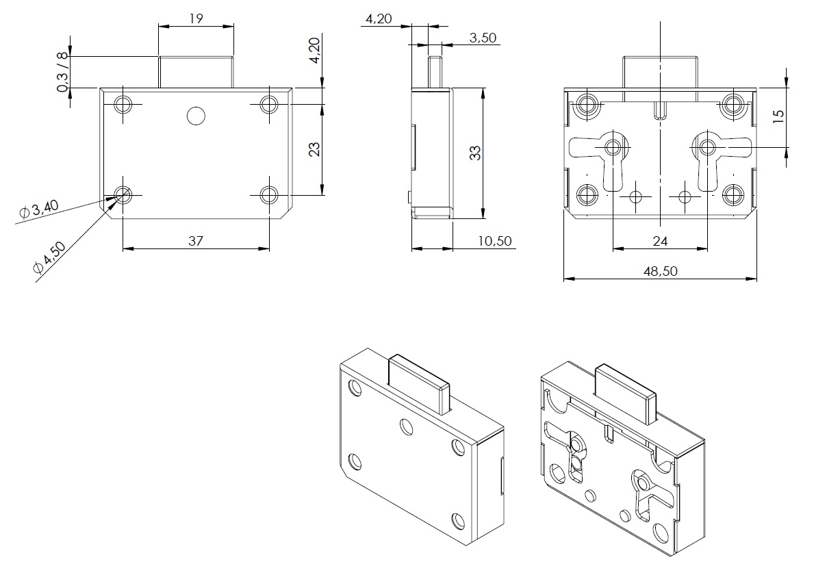 Box Lock 2110 Nickel Pl, 15mm Backset (48x33mm), Without Key